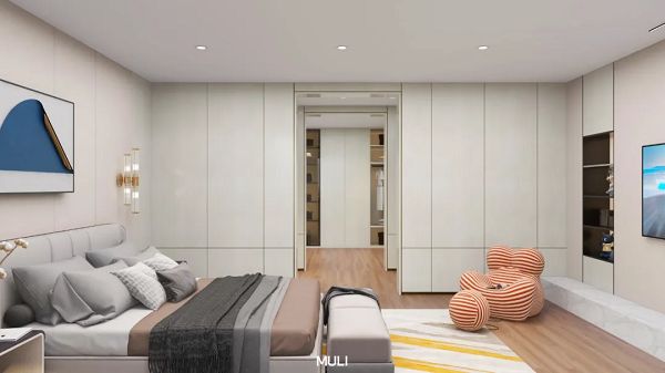 步入卧室,极简的线条元素搭配内收的光影,让卧室风格趋于简约,同时呈现舒缓柔和的中性基调,也让睡眠空间回归至简、安心、放松的氛围。