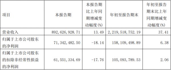 10月27日晚,金牌厨柜家居科技股份有限公司(以下简称“金牌厨柜”)披露2021年第三季度报告,报告显示,第三季度归属于上市公司股东的净利润约7134万元,同比下降18.14%。第三季度归属于上市公司股东的扣除非经常性损益的净利润约为6155万元,同比下降17.76%。