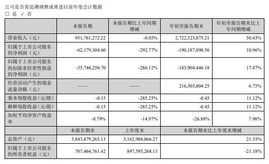 10月28日晚间,东易日盛(002713)发布第三季度业绩公告,公告显示,报告期内,东易日盛实现营业收入约9.52亿元,同比下降0.03%。实现归属于上市公司股东的净利润约-6218万元,同比下降292.77%。实现基本每股收益-0.15元,同比下降285.25%。