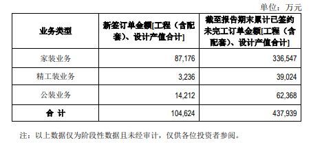 对于核心的装修装饰业务,公告也透露了第三季度的主要经营情况,其中家装业务占比最大,其次是工装业务,精工装业务占比最小。