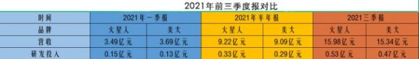 分报告期营收看,2021第一季度,火星人比美大还略低一筹。而在2021上半年财报,上市仅半年的火星人集成灶实现反超,成为集成灶行业营收第一品牌。彼时圈子里有不少的质疑声音,认为火星人是为了“行业第一”只是暂时现象。然而三季报中,火星人以营收15.98亿元,将与营收第二的差距从半年报中的1300万,扩大到了6400万,稳坐集成灶行业营收第一品牌。