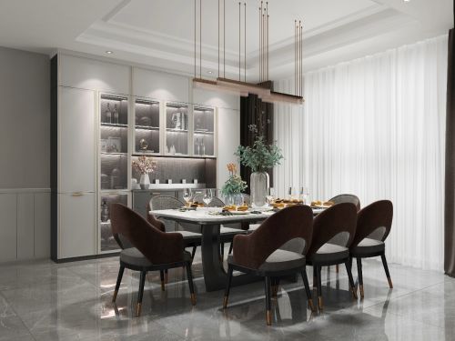 星之家雅·圣菲的餐厅,虚实结合的布局,满足了美酒陈列与收纳需求。玻璃式的柜身设计,美观大方,同时也方便转身随手取物;流畅的操作动线,为日常聊天品酒,增添多一份惬意。