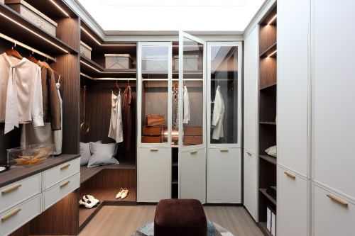 星之家雅·圣菲的卧室,朗阔雅静,唤醒无限穿搭灵感。柜门的描边设计和沉稳的撞色搭配,实现结构与留白之间的联系,意蕴深远,勾勒出一个精致又时髦的世界。玻璃衣橱将密闭的空间打通,有利于视线穿透,减少压迫感,也更利于集中收纳衣物。
