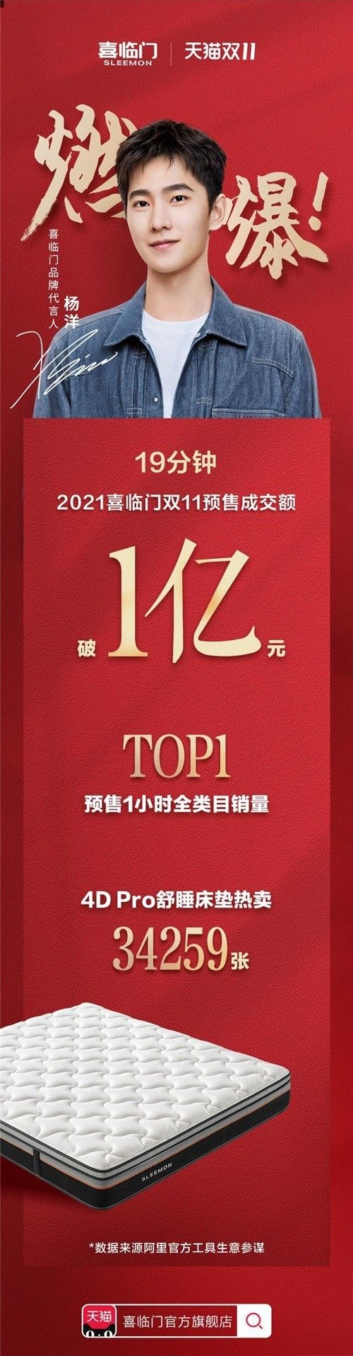 喜临门双十一预售天猫19分钟破亿 京东45分钟超2020