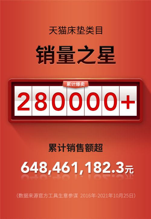 喜临门双十一开门红的“强势起跑”,源于其在产品力、影响力、保障力的行业全面引领。基于对消费者需求的深度洞察,喜临门强势抓住年轻群体的流量端口,已连续多年在天猫、京东平台蝉联床垫类目冠军,在国内床垫线上领域占据着绝对的龙头地位。