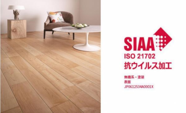 除此之外,朝日木泰科的天然木材地板系列,还具有很强的“抗病毒”功效,通过了日本抗菌制品技术协议会制定的抗病毒・抗菌标准,作为天然木材地板在日本首次获得了日本SIAA抗病毒认证!