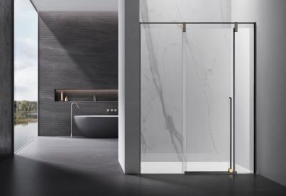 VICI-CU5淋浴房借鉴中国传统徽派建筑屋檐,将繁复的线条简化成具有现代感的直曲线运用,雅黑与珠光金吸睛撞色,素简之余,又有点睛之处与灵动之趣,极富东方摩登感。