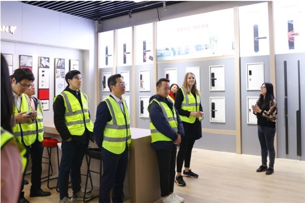随后,亚萨合莱团队陪同瑞典商会区域负责人Ida Sandgarde、成都外商投资协会会长袁昕同及二十余位企业代表参观考察了盼盼安全门成都工厂及全新品牌展厅,互相交流在华投资及企业发展的经验,并聚焦智能家居发展及可持续发展等主题进行了深入探讨。