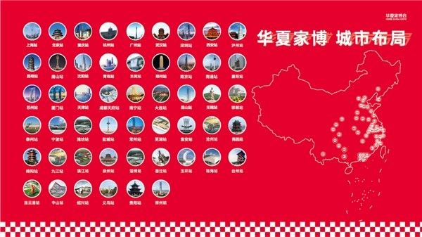为了更好的将省钱便捷的家装采购服务,更好的服务到消费者,华墨集团于2019年提出了“百城计划”的战略目标——2023年实现华夏家博会覆盖国内100城。经过全体华墨人的共同努力,2021第三季度新开城市增加了:淮安、沧州、镇江、柳州、淄博、泸州、襄阳、珠海、台州、邯郸、宿迁、连云港、玉环、中山,落地城市增至51城。