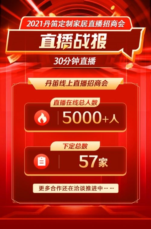 5000+人围观,57家下定!2021丹笛定制家居直播招商会完美收官!