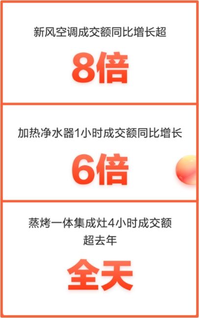 时下健康养生已经是超越年龄层而存在的全民热点,家电作为每个人的日常生活必备产品,其健康属性也在加速突显,更有诸如新风空调、集成灶、加热净水器等健康新品类应运而生。京东家电11.11晚8点开门红统计数据显示,截至11月1日00:00,能解决越睡越困问题、时刻为室内增氧换气的新风空调成交额同比增长超8倍。集蒸箱、烤箱、油烟机、灶具于一体,能最大化节省厨房空间,让家装颜值上升的蒸烤一体集成灶,4小时成交额超去年全天;万元以上蒸烤一体集成灶成交额同比增长3.5倍。还有多档水温、方便每个家庭成员随时使用的净热一体加热净水器开售1小时成交额同比去年11月1日00:00-01:00增长6倍。各大品牌与健康相关的产品也有着十分强劲的表现,格力空调13分钟成交额超去年11月1日全天,除甲醛空调4小时成交额环比增长超4倍;京品欧乐B产品4小时成交额同比增长超200%。
