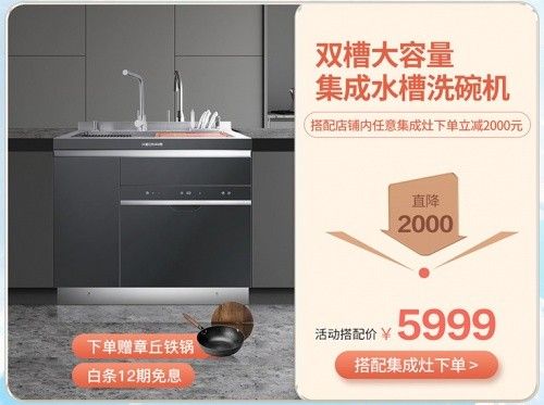 双11搭配购实惠,集成水槽洗碗机,清洗、保洁、收纳、存放四合一,给您不一样的厨房乐趣,科恩KN0A3集成水槽洗碗机双11直降2000,活动搭配价仅需5999;