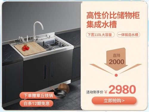 双11感恩回馈款,多功能一体集成水槽,释放厨房大空间,科恩X1多功能集成水槽,双11活动期间直降2000,活动到手价2980。