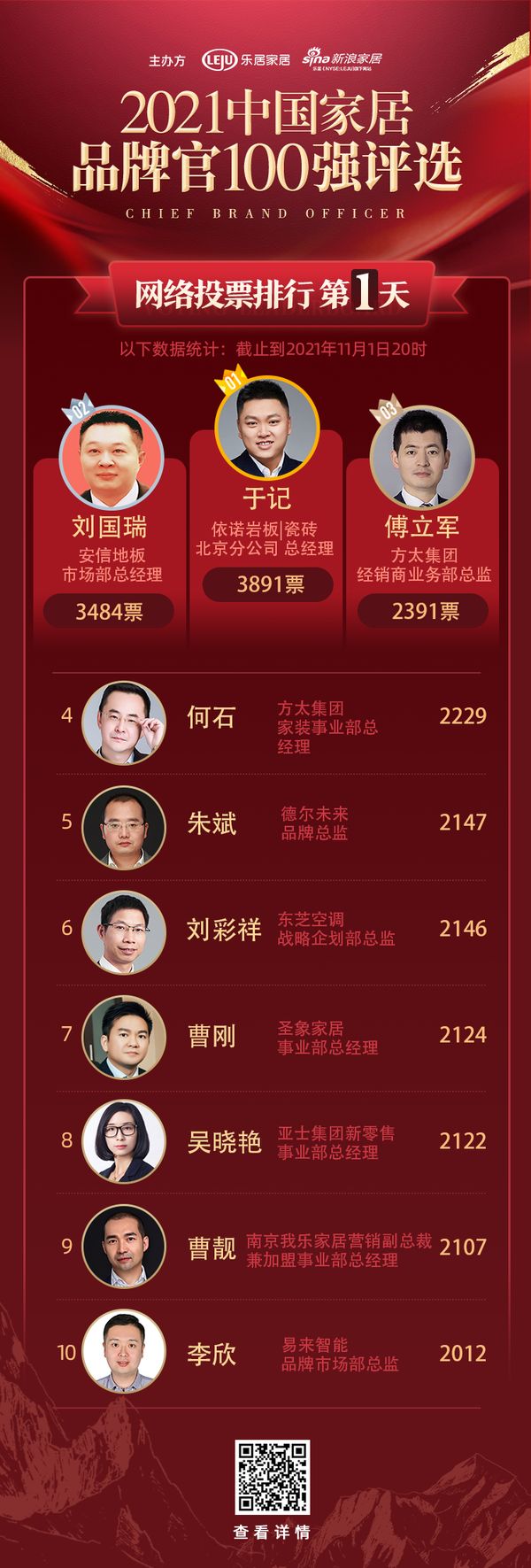 票选DAY1 | 于记、刘国瑞、傅立军位列2021中国家居品牌官前三甲