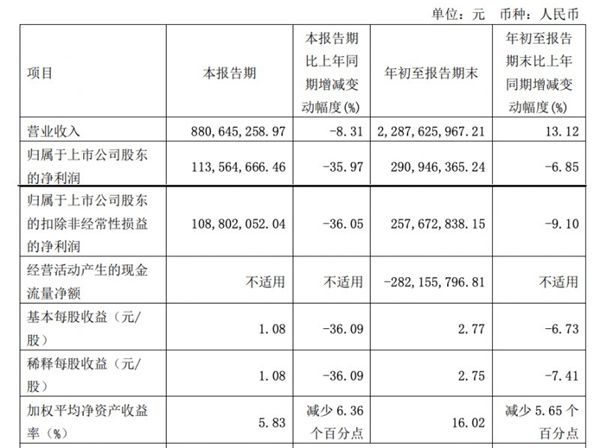 新浪门窗频道讯 江山欧派(603208.SH)于10月27日发布2021年三季度业绩公告称,年初至报告期末公司实现营业收入约22.88亿元,同比增长13.12%;实现归属于上市公司股东的净利润约2.91亿元,同比减少6.38%。