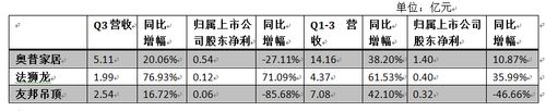 近日,吊顶上市公司集中披露2021年第三季度季报。