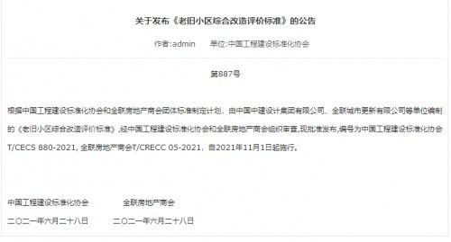 11月1日,由中国工程建设标准化协会及全联房地产商会共同制定的《老旧小区综合改造评价标准》(以下简称“《标准》”)正式施行,君旺集团作为全联房地产商会城市更新和既有建筑改造分会常务理事单位,参与此次标准制定并提出多项重要修改意见。该《标准》是根据《2019年第一批协会标准制订、修订计划》文件(建标协字[2019] 12号)的要求制定,随着标准的实施,标志着老旧小区改造步入标准化时代,对各地城市更新,改善居民生活环境,提高城市宜居性具有指导意义,为老旧小区改造的成果评定提供了技术依据,填补了国内老旧小区改造评价标准的空白。