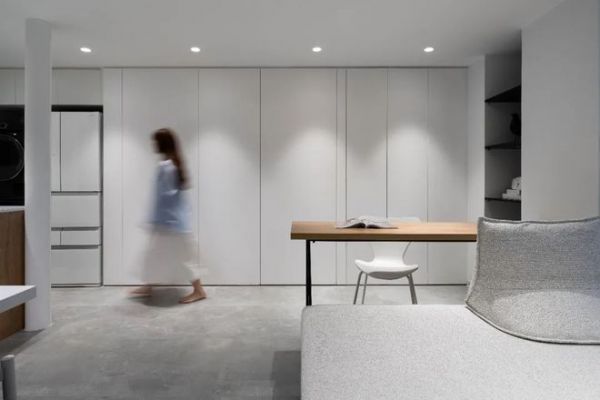 房屋整体采用黑白灰原木色调,打造自然而然的舒适感,让户主走进家中就能够真正的放松。浅灰色的水泥墙让整体空间更有层次,块面的木色与绿植融合,在这小小的天地显得温馨自然。