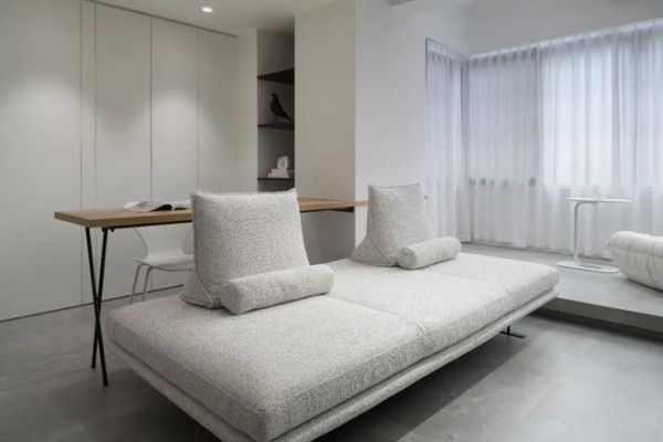 阳台区域抬高,下设有灯带,烘托了整体氛围。屋主休憩时,更加放松,舒适惬意。