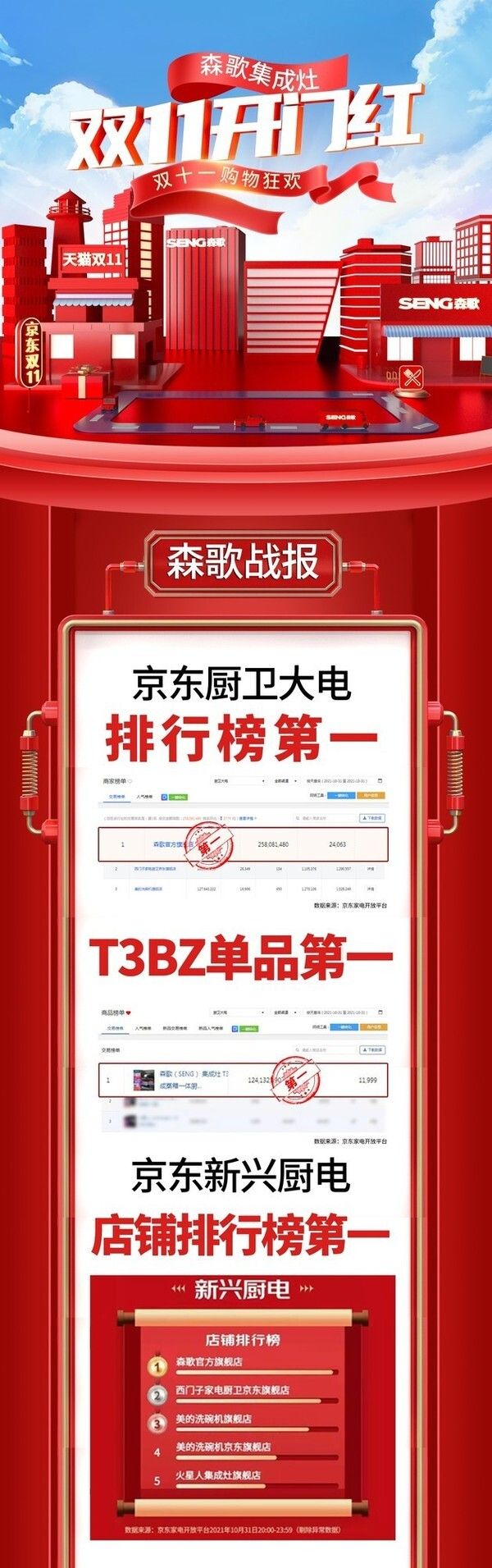 11.11首战告捷!森歌先声夺人,勇取天猫京东双榜冠军!