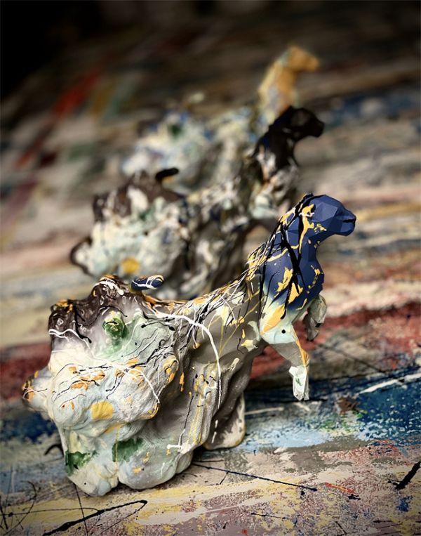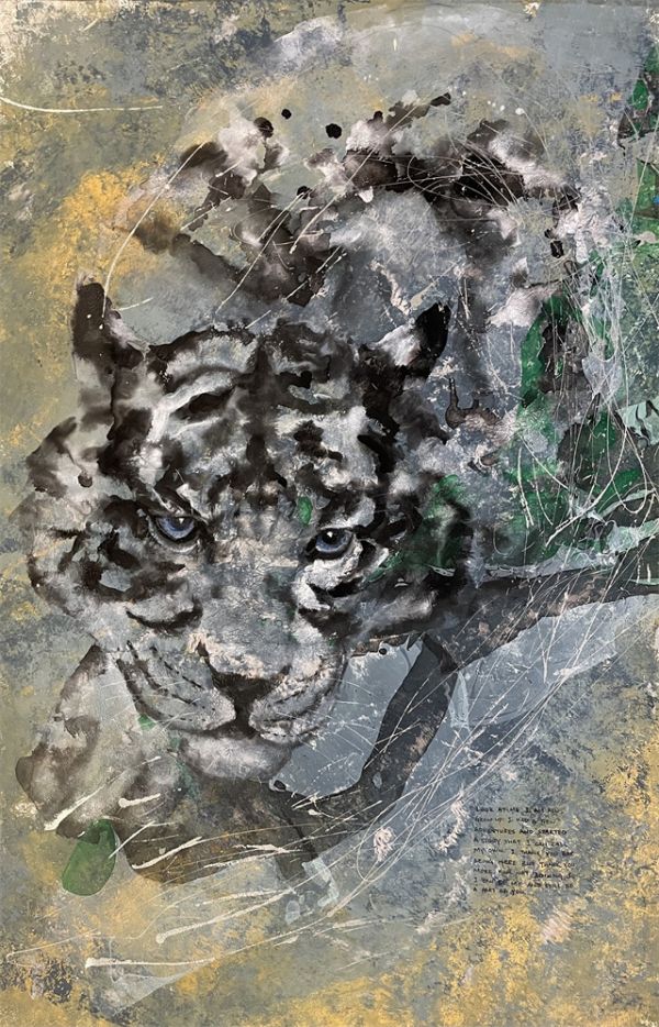 不拘于绘画或雕塑,他一直不断用自己的方式去把他心中的中华文化,与当代潮流“缝”起来。绘画上,诗画融合将动物形体融于水墨意境,辅以英文题诗,呢喃出动物们无国界的思绪,亦是中西文化的自语。雕塑上,延续东西方诗歌和绘画交织的二维空间,转为“雕塑出自己的绘画世界”,将诗画合一的精神空间化为有形。