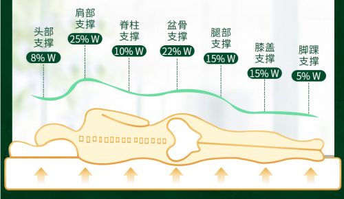 用乳胶汁做成的床垫拥有了十足的回弹性,可以顺应身体的轮廓给予支撑,柔软的乳胶床垫可以大大缓解人体压力,在保证舒适柔软的情况下还能给予支撑。帕迪亚天然乳胶床垫根据人体工学原理,采用科学的分区设计,更具整体性也更富弹性,可有效承托头颈、肩背、腰椎、盆骨、膝盖、小腿、足踝七大区域,高度贴合身体的凹凸曲线,减少脊椎附近肌肉及韧带的张力,使脊椎在睡眠状态下得到休息和恢复,让疲惫的身心得到放松,保护脊椎健康,促进深度睡眠。
