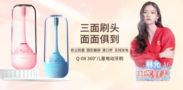 素君品Q-08 360°儿童电动牙刷它有着适合儿童独特可爱的外观,同时为了适合幼儿的口腔特点,特别制作了多种不同的硅胶可食用牙刷头以此满足不同年龄段的儿童,它的牙刷头可以360°旋转,从而达到最好的清洁效果。