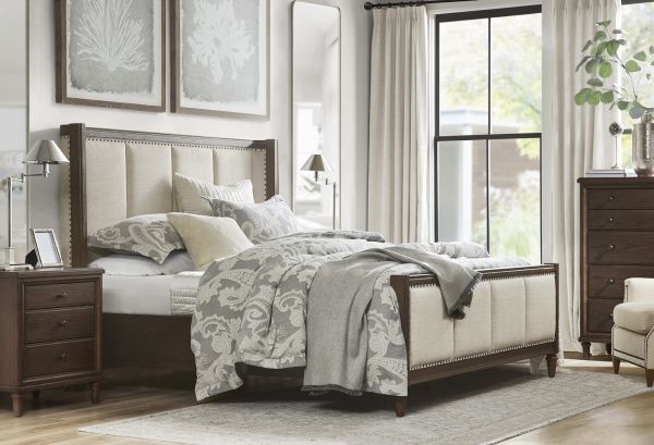 其中,Burlington床的贴心设计尤其令人称道。床高屏以环绕姿态微微收拢于床头,方便倚靠的同时也赋予了整床颇具标志性的优雅气质。核桃木色和浅沙布色的搭配,好似为其加上了一层淡淡的复古滤镜,家的气氛亦变得安然起来。