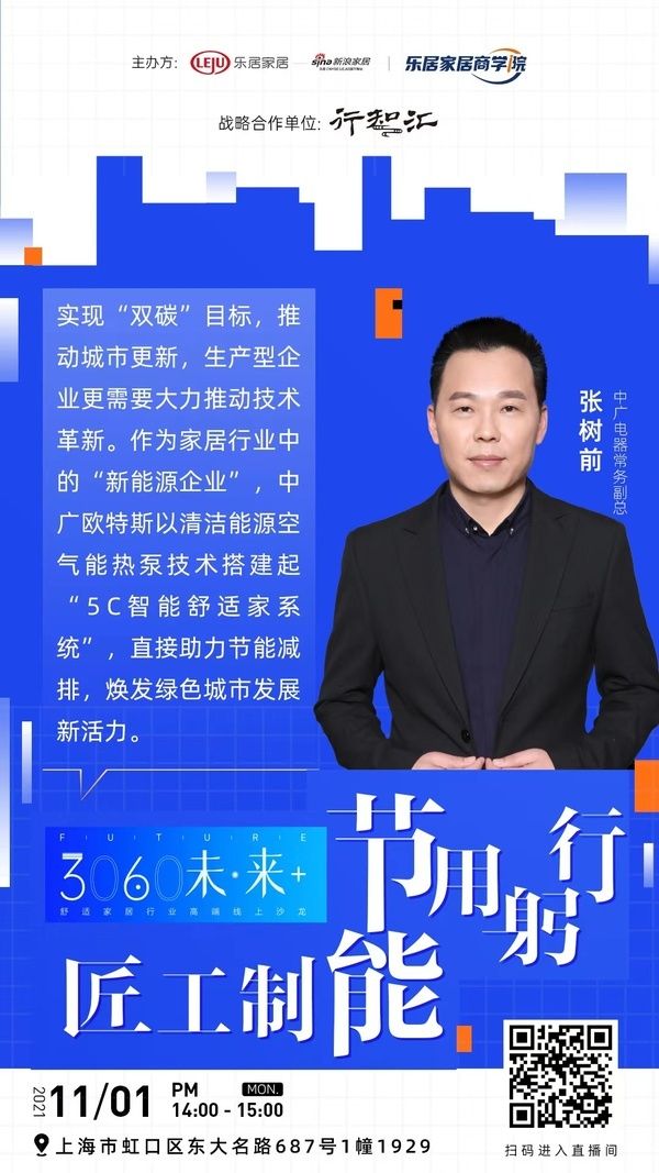 浙江中广电器股份有限公司常务副总张树前表示,实现“双碳”目标,推动城市更新,生产型企业更需要大力推动技术与能源革新,企业必须从原来的传统、粗放模式慢慢转向精细化、绿色、环保。作为家居行业中的“新能源企业”,中广欧特斯以清洁能源空气能热泵技术搭建起“5C智能舒适家系统”, 直接助力节能减排,其他配套系统通过性能的提升,来达到更高能效,间接实现节能减排。立企多年,中广欧特斯始终坚持以消费者的需求为出发点,不断挑战更新技术,焕发绿色城市发展新活力。