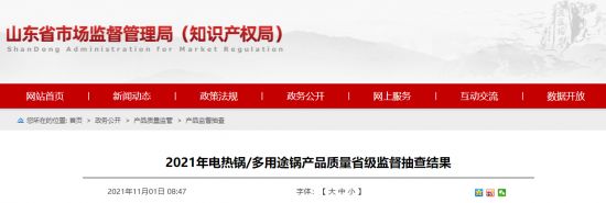 家电快讯| 山东省市场监督管理局抽查公布:3批次电热锅、多用途锅产品不合格