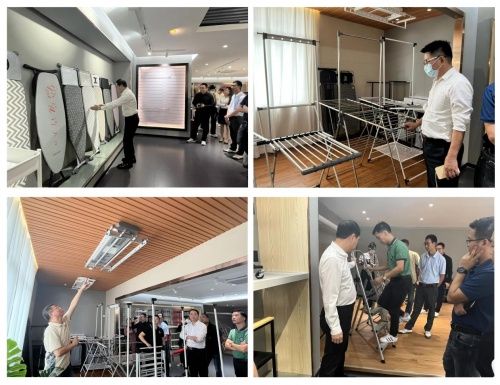 在伟经集团总裁及总监等高管的陪同下,伦教总商会领导现场参观了伟经集团多功能展示厅。讲解人员为大家介绍伟经集团发展历程与产品理念,描述烫衣板、置物架、厨卫五金用品、晾衣架家用步梯等核心产品的迭代路径与技术变革,带领大家观看家用厨卫五金用品、烫衣板等火爆产品,并对产品的特色性能做了现场演示。参会领导们兴致勃勃,近距离感受了家居五金用品的无限魅力与美好前景。