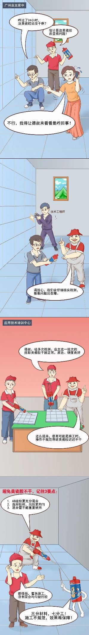 美瓷胶不干往往是施工原因导致的,施工时注意以下几点,可有效解决不干的情况。