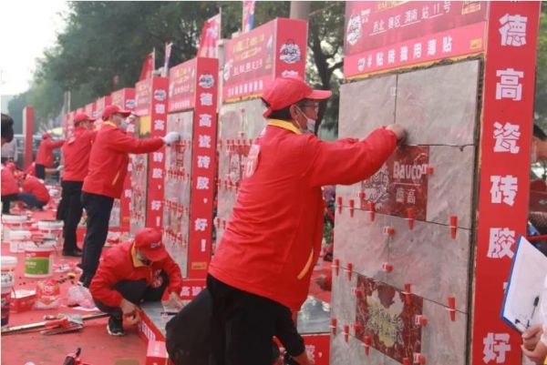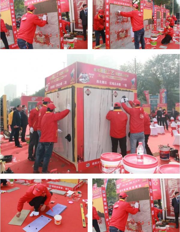此次比赛统一采用新型瓷砖镶贴材料——瓷砖胶和与其工艺要求相匹配的齿型刮板,要求参赛者在规定时间内完成贴砖,并通过评审施工操作、瓷砖切割、切割尺寸、施工厚度、缝宽差值、表面平整、灰浆比例、整体效用等标准,选出优胜师傅代表西北战队前往上海参加全国总决赛。