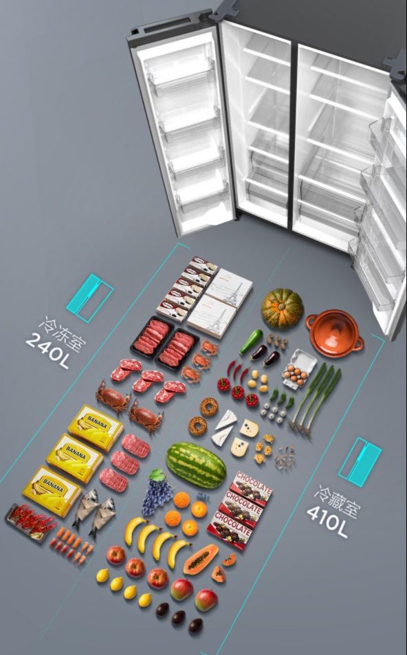 TCL 650升大容量养鲜冰箱R650T1-S贴心划分了6层超大的精细分区保鲜空间,满足不同食材的多样化存储需求,瓜果蔬菜肉蛋奶以及饮料、蛋糕、速冻食品等食材都能拥有专属于它们的地方。分类精细储存的好处有两点,首先食材摆放井井有条,更便于用户挑选食材,不必再“翻箱倒柜”找食材;另外,不同食材之间的串味问题也能够轻松解决,还给用户一个清新无异味的内部环境。