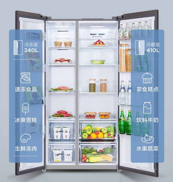 TCL 650升大容量养鲜冰箱R650T1-S拥有超市级的大容量,能够储存大量食材,满足全家膳食所需,搭配上AAT负氧离子养鲜技术,备好充分的食材,就可随心解锁新鲜美食,这种快乐可太香啦!