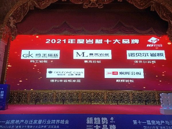 2021年10月14日,以“新趋势 大品牌”为主题的第十一届中国房地产与泛家居行业跨界峰会暨2021年度“建筑卫生陶瓷十大品牌榜”颁奖盛典在佛山罗浮宫索菲特酒店隆重举行。颁奖典礼上,鸥王磁砖•岩板荣获“岩板十大品牌”这一重量级奖项。
