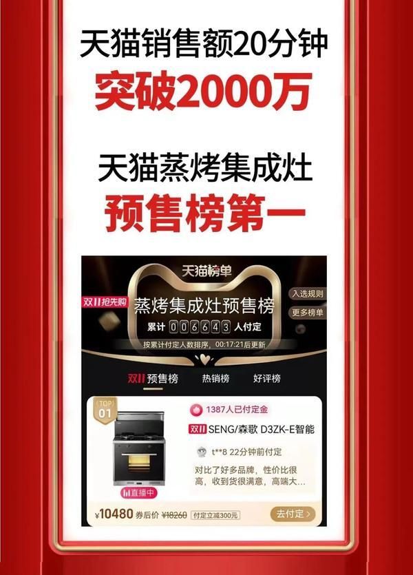 开门红再破1亿,森歌集成灶3大爆款线上销售持续领跑双11!