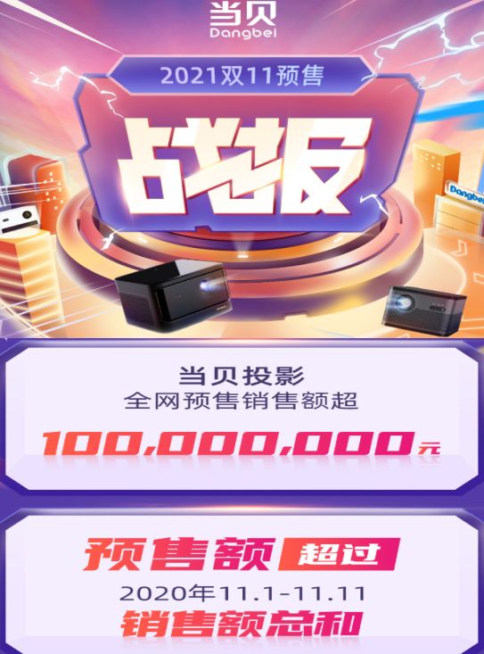 而当贝是近3年时间里唯一连续保持增速的国内投影仪,2019年首款投影仪产品发布,仅用半年时间稳居国内投影仪品牌前3名,实现黑马投影仪逆袭弯道超车。通过多矩阵产品线(便携、1080P旗舰、高端激光投影仪、4K等)及创新功能系统,赢得了众多用户选择,在2021年双十一全网预售销售额超1亿元!预售额超过去年双十一期间的总和。