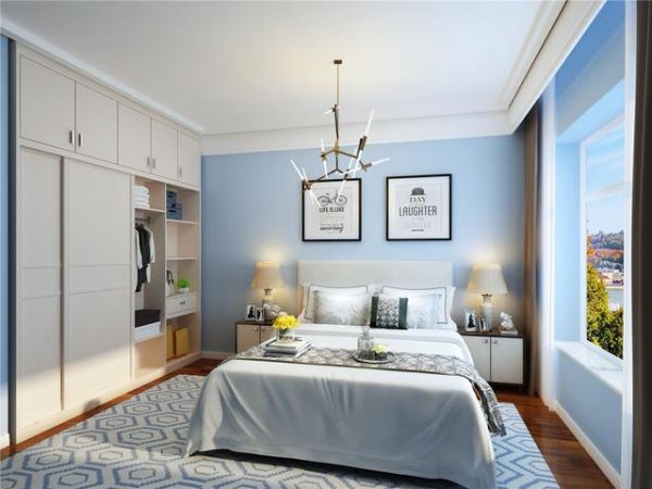通常情况下,衣柜顶部我们都会用在放置不使用的被子,所以只需要简单的设计几个正方形隔间就可以了,高度可以在60cm左右,这样就不怕放不下太厚的被子。也可以灵活搭配,比如可以设置三个同样宽度的隔间,最后一个隔间宽度额外宽一些,可以用来收纳东西。