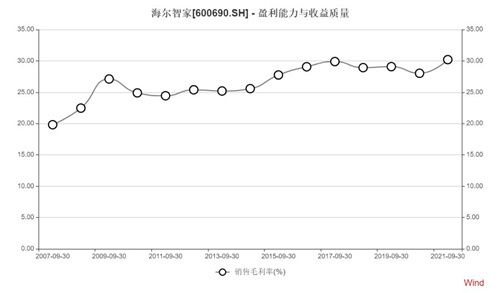 体现在相关的财务指标上,2021年前三季度,海尔智家毛利率达到30.21%,同比提升超一个百分点,为近十五年来同期最高。
