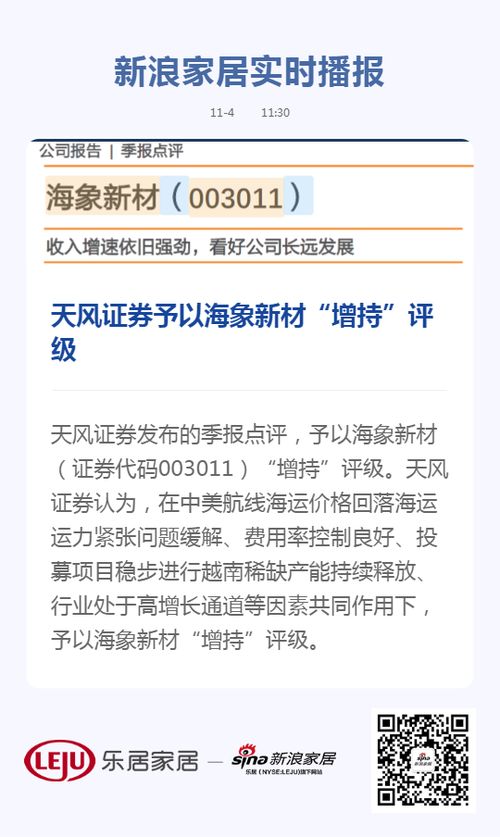 地板·顶墙快讯丨天风证券予以海象新材增持评级