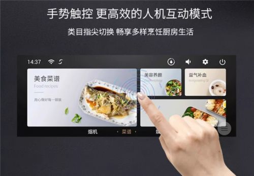 在机身顶部的6.8寸高清智能屏设计,WiFi联网实时更新大数据,为用户提供几百道精致菜谱在线学习,即学即用的烹饪指导,就算是厨房小白也能分分钟烹饪一桌菜,同时上炒煮,下蒸烤,十五分钟就能完成一桌菜。