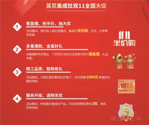 10月25日-11月14日,莫尼集成灶莫尼“双十一半价购”全国大促火爆进行中!