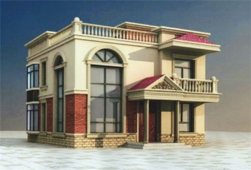 这款房屋的占地面积比较大,有140平米左右,外观看起来非常的清新、舒适。一楼红色外墙+二楼白色的文化砖+蓝色的屋顶,这样既时尚、美观,又不容易过时。而从布局上来看,客厅宽敞,方便业主招呼客人。房间布局紧凑合理,能更好的满足业主的居住需求。