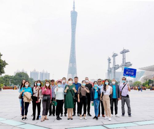 ( 2021慕思全球睡眠文化之旅,嘉宾们打卡广州小蛮腰)