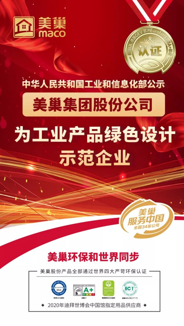 工信部公布丨美巢集团为“工业产品绿色设计示范企业”