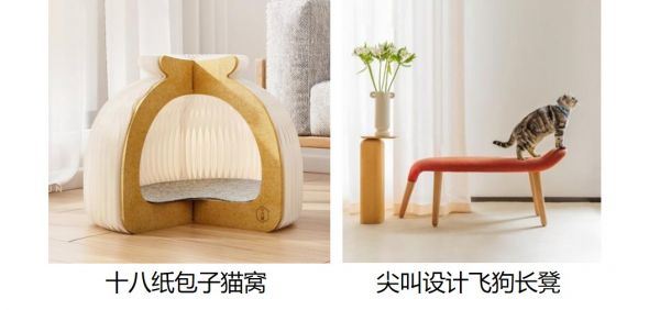 为了让客厅成为人宠皆爱的活动场所,十八纸从生活中汲取灵感,设计出趣味包子和帅气帐篷两款个性猫窝,半包裹造型给足宠物安全感的同时,还方便折叠收纳,为宠物家庭提供一个自在空间。而尖叫设计上线的飞狗长凳,通过将狗拟物化营造出忠犬陪伴的温馨感觉,是可作为换鞋凳或床尾凳实用型装饰品。