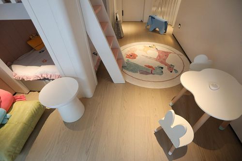 天格新实木地板爱巢系列,特点是梯形自由拼,高可DIY度