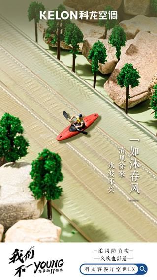 乘舟游于水上,一阵柔风吹过,水面泛起“Z”字型的波纹,给人“如沐春风”的舒适体验。正是科龙客餐厅空调LX的水波纹Z字型导风叶片,普通送风角度23-25°,而水波纹Z字型导风叶片的柔风送风角度为30°,实现回旋型出风,打散强风化为柔风的同时气流紧贴,更聚集、不分散,柔风量不减。