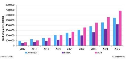 Omdia指出,由于这一新的聚焦,全球智能家居市场(2020年市场价值估计为608亿美元)预计将在2025年超过1785亿美元,从2020年到2025年的年复合增长率为24.1%。在普及率方面,Omdia估算,2020年全球有19%的宽带家庭拥有智能家居设备,高于2017年的10%。